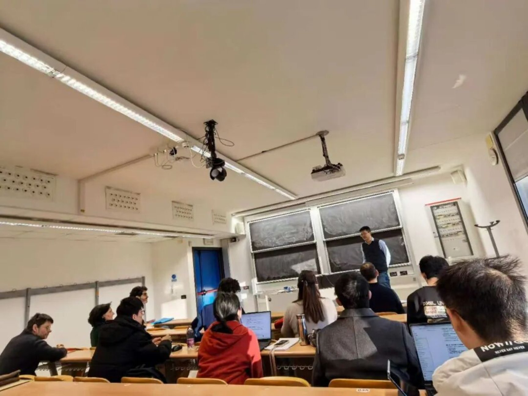 Among the highlights, Professor Kloosterman’s lecture on the average rank of elliptic surfaces skillfully integrated geometric and arithmetic-statistical ideas, demonstrating the unique appeal of cross-disciplinary research. Professor Fornea’s in-depth exploration of the Bloch–Kato conjecture showcased the frontiers of modern number theory, giving students a clearer understanding of the conjecture’s significance and research trajectory. Professor Chiarellotto’s presentation on p-adic differential equations carefully unpacked the profound applications of analytic tools in arithmetic geometry, lifting the veil on this “mysterious” field and deepening students’ appreciation of the intrinsic connections and integrative trends among different branches of mathematics.