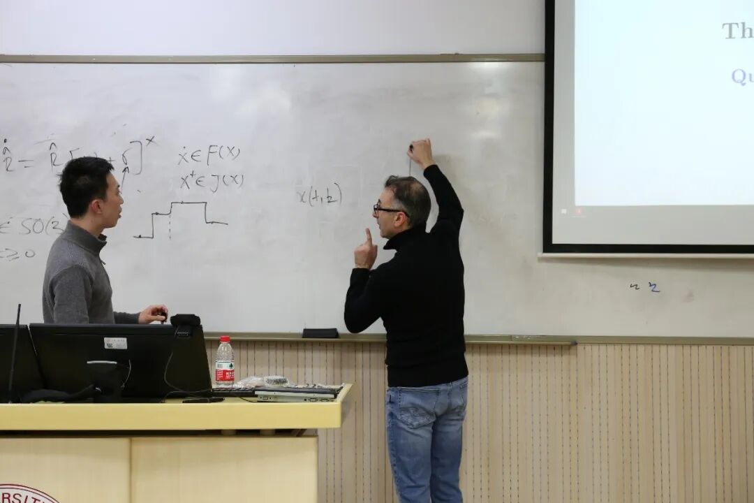 Professor Tayebi began by addressing the problem of attitude estimation for aircraft, systematically reviewing the development of navigation state observers and clearly explaining several classical observer design methods. He pointed out that traditional Kalman filters and their variants are widely used in practical applications; however, due to the inherently linear structure of the Kalman filter, they can only guarantee local stability, which imposes limitations in certain scenarios. Therefore, the design of nonlinear observers with near-global or global stability becomes particularly important. Building on this, Professor Tayebi shared a series of important laboratory results in the field of geometric nonlinear observers and their practical applications, especially hybrid nonlinear observers for inertial navigation based on landmark measurements.