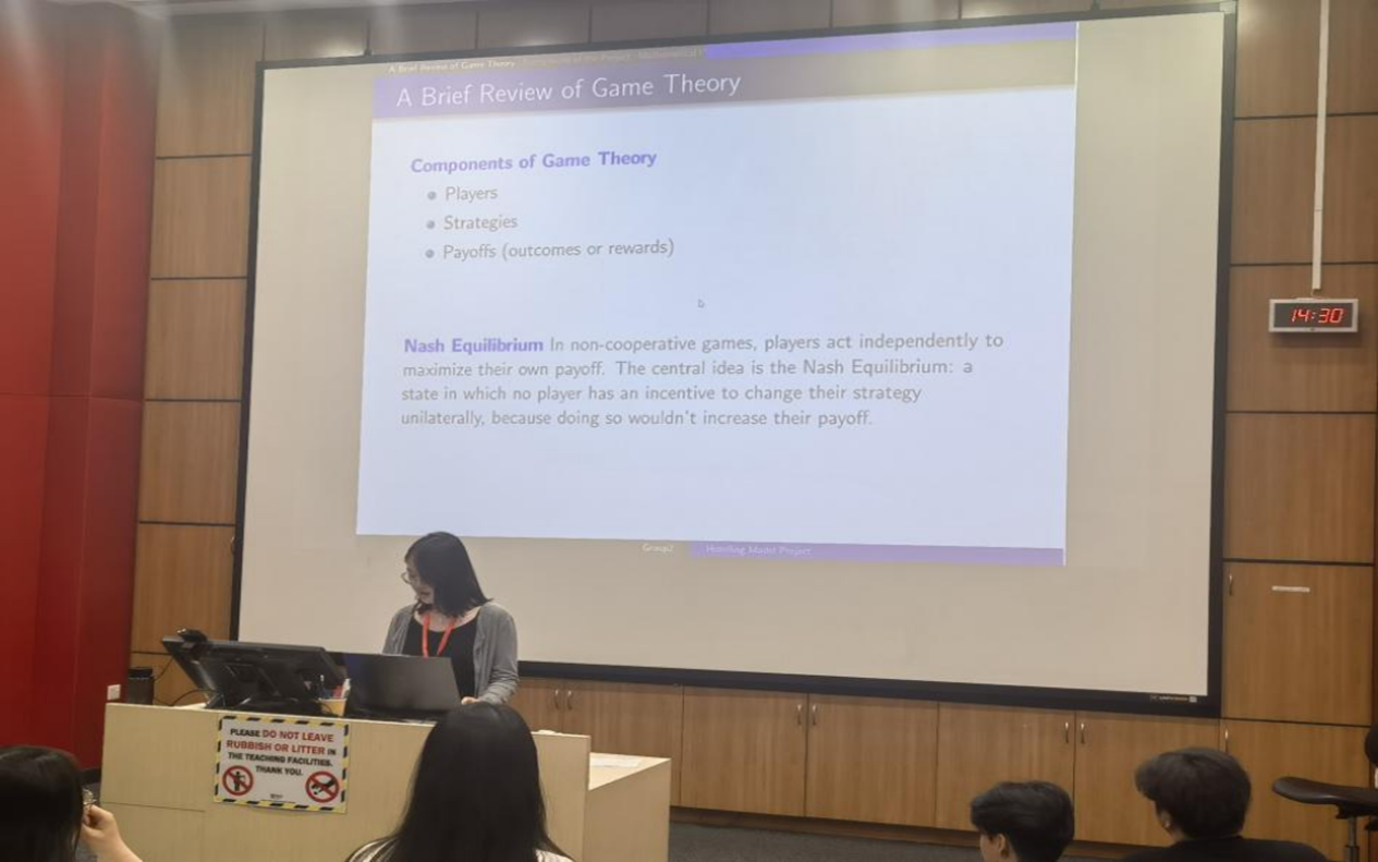 These engaging lectures not only provided students with a solid intellectual foundation but also cultivated new ways of thinking. For example, in the lecture How AI Can Support Mathematics Learning, students were introduced, for the first time, to how artificial intelligence can be applied in theorem proving, model reasoning, and even in generating novel conjectures in specific contexts. In Introduction to Game Theory, concepts such as the Nash equilibrium were brought to life through case studies like the Cournot and Bertrand models, illustrating their power in analyzing real-world economic competition.