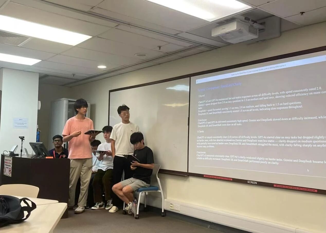 These projects extended far beyond the scope of regular coursework. Within just a few days, students conducted literature reviews, designed theoretical frameworks, prepared presentation slides, and rehearsed their final reports. From initially struggling with language barriers to gradually establishing effective communication, and from feeling lost in unfamiliar fields to formulating feasible research plans, each group’s progress embodied the benefits of cross-cultural collaboration. Mathematical symbols and logical reasoning became a shared language, allowing students of different nationalities to map out ideas on a blank canvas and transform abstract concepts into concrete research outcomes. In the final presentations, what was showcased went beyond data, graphs, and arguments—it reflected the students’ growth, transformation, and newfound confidence.